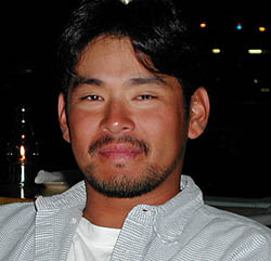 | ヘッドセイルトリマーの小林正季。 日本ヨット界の若手ホープ。ケンウッドカップでは<ゼネット>のヘルムスマンとしても活躍。 J/24にも乗るし、レーザーもやっている。 とにかく、ヨットが大好き小僧である。 料理も得意だし、買い物も好きだけど。 結局マメなのね。 |