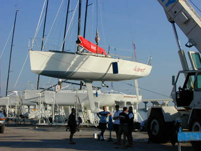 ![]() これがマム30。 細いキールが特徴的で、確かに、うまく走らせないと失速してしまう。 だから、腕の差が出て競って楽しいのかも。 |