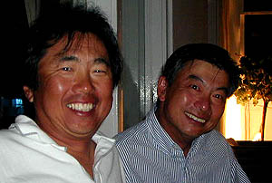 右が植松オーナー。48才。 食い物はケチらない、というありがたいポリシーで、クルーは満足しております。 左が僕。 オーナーと一緒の枠に納まり、クルー達には「チミらとは格が違うのよ」という事をしっかりと思い知らせようと思ってこういうレイアウトにしてみました。 実際は、ハゲだのヘボだの、バカにされています。 |