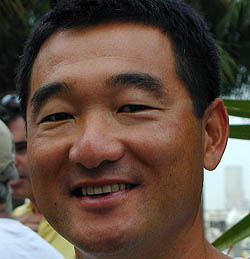 | 早福和彦 バウ 96年にニューヨークのレガッタで合ったときは、正直言って貧乏臭かったが、今や世界の早福である。生活の基盤もしっかりしたようで、結婚も近いか? ヨットの腕もますます磨きがかかっており、他のクルーからの信望も厚い。 ニッチャレは不参加になってしまったが、次回はワンワールドでアメリカズカップ参戦。応援しています。 |