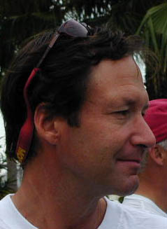 | ピーター・アイスラー 今回、タクティシャンを勤めた、アメリカヨット界の大御所。 僕は今回初めて一緒に乗った。 紳士的な人なのだが、髪型や服装がいつもなんだかだらしない。そういうところが、また魅力の人。キザじゃない。自然体なのね。 奥さんのJJも有名なセイラーで、彼女のシドニーオリンピック出場のため、ピーターはこれまでのエスメキャンペーンに加われなかったのだ。 コース取りは見事で、今回の圧勝は、彼の力に寄るところが大きいのではないかと思う。 |