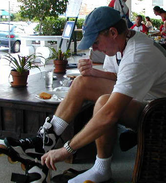 | そしてワタシ。(写真は無い) このチームでは、ソアマンを担当。 SORCでは、上下1.5マイルの6レグ。 風は15ノット〜20ノット吹いているから、50ft艇にとっては1.5マイルなんてあっと言う間。忙しいたらありゃしない。 でもって、1日3レースですぜ。 ソアマン泣かせでありました。 さ、これでこのチームは解散。 船は4月中旬には日本に戻り、しばらくは日本人のチームで国内レースに出場です。 でも、あまりレース無いんですよね。日本には。 (2001/03/07) |