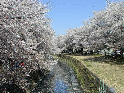 ま、どこもかしこも見事に護岸され尽くされていて、ニュージーランドの美しい川を見慣れている私にとってはドブ川なんだけど、別に臭いもなくゴミも少なく、水も透明。これで文句を言ってちゃバチが当たりますなぁ。 対して、境川はサイクリングロードこそ整っている物の、やや臭う。風向きのせいかもしれないけど、引地川では全然臭わなかったのにね。おまけに桜もほとんど無く、景色は殺風景。 |