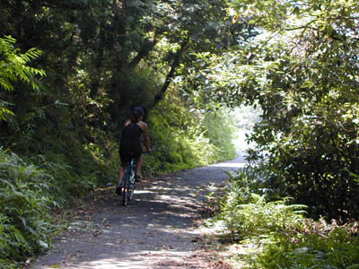 こんな感じ。 舗装路ですが、山の雰囲気が十分楽しめます。 マウンテンバイクに細身のタイヤ付けている、なんて人にはうってつけかも。 |